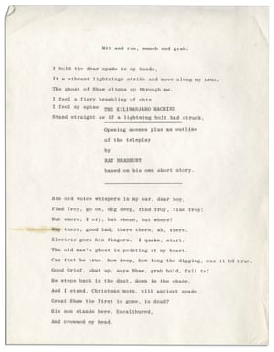 Bradbury, a lifelong fan of Shaw’s, was given the spade as a Christmas present. Shaw had used the tool to plant a mulberry tree on his 80th birthday, in 1936. In the lengthy, unpublished poem, titled GBS and the Spade, Bradbury wrote of how, holding it, he could feel the Nobel laureate’s influence:
