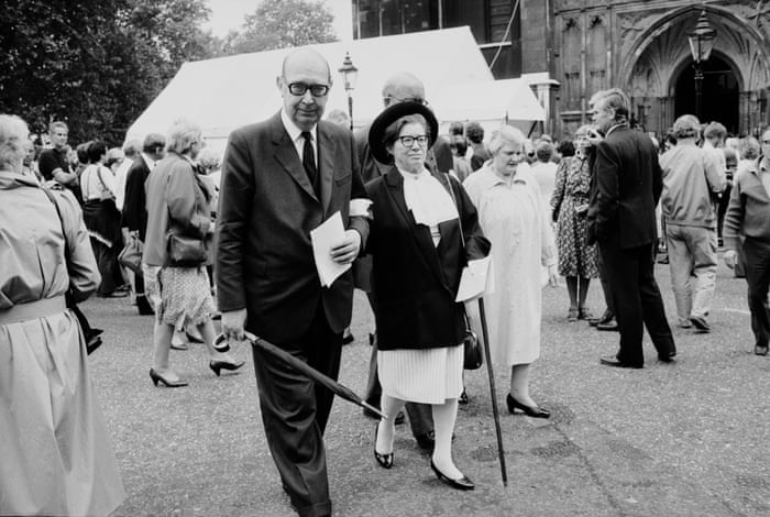 | Philip Larkin and Monica Jones at the memorial service for Poet Laureate Sir John Betjeman at Westminster Abbey, London, in 1984. |