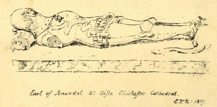 It’s never occurred to anyone that Keats’s imagination might also have been set racing by the stone avatars of the Arundels, because the serene gleaming effigies don’t seem to have much in common with Keats’s haggard knight. However, intriguing visual evidence in the form of two little-known sketches in the British Museum may hold the key to the mystery.